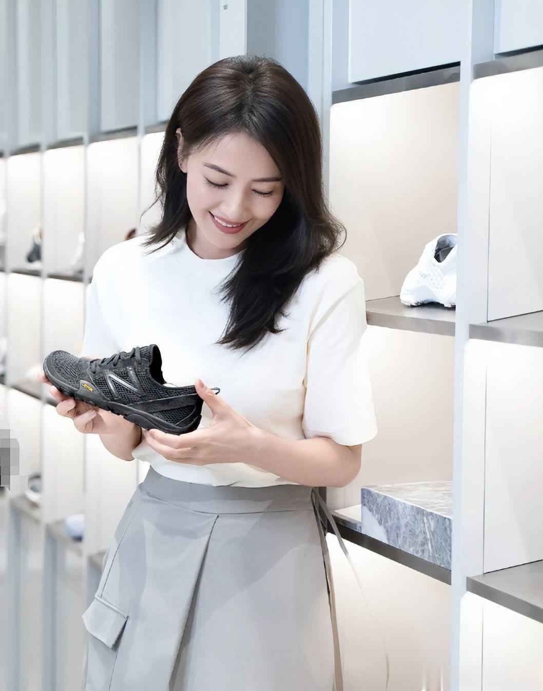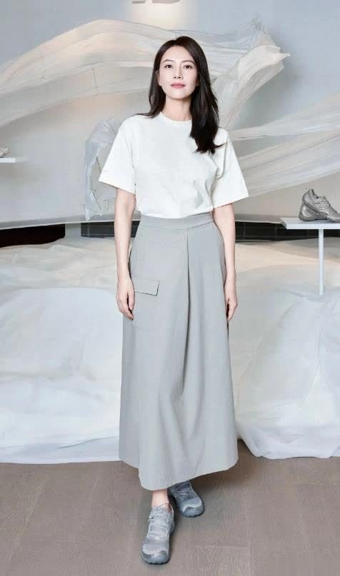 从视频中可见,她身着白色短袖上衣,搭配浅灰色长裙,简约的装扮却完美衬托出她独特的气质。